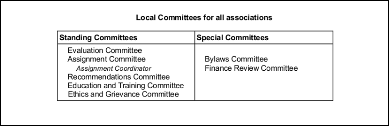 Technically there is no need for an executive committee. The board of trustees can appoint regular members to do the duties of the executive committee. The board of non-trustees will no longer have to wear two hats. The executive board, with board of non-trustees only hinders progress and improvements of an association. Executive committee should be dissolved and replaced with members from the general membership. The membership is better suited to put forth actions to improve the governing of the association. The below image shows the committees that regular members can serve on.